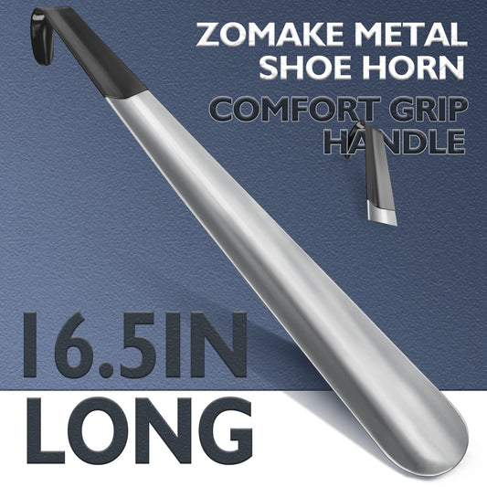 2Pcs Long Handle Shoe Horn 16.5 ‘’ 7.5‘’ With Leather Cover Metal Spoon Travel Wear Shoe Helper Lifter Lazy