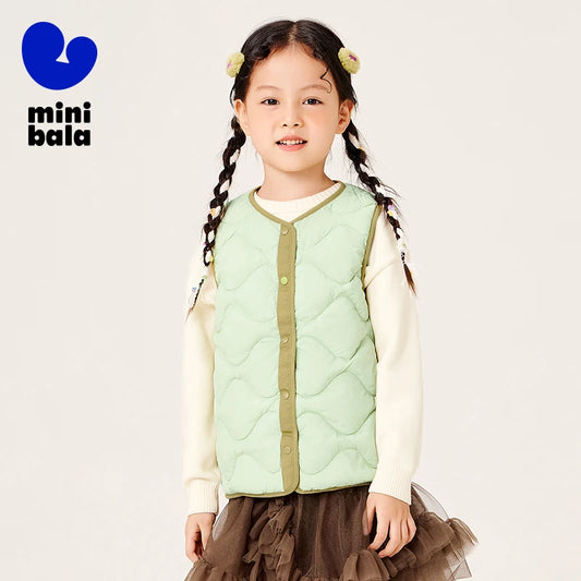 Mini Bala Kids Down Vest Winter Reversible Duck Down Waterproof Windproof Warm Lightweight for Outdoor Activities Macaron Color