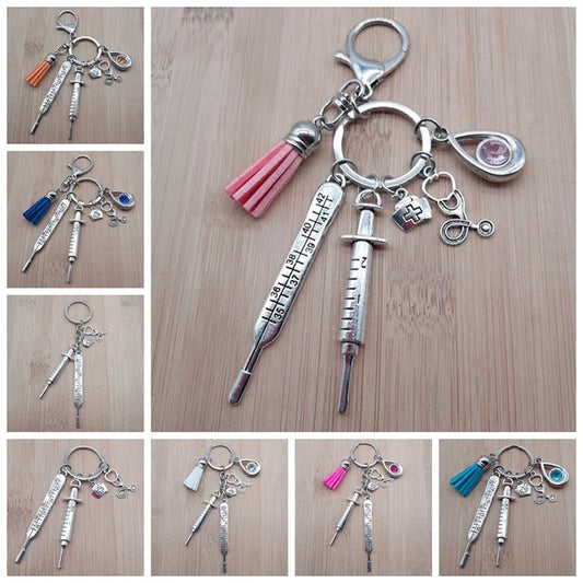 New Nurse Medical Box Medical Keychain Needle Syringe Stethoscope Tassel Cute Keychain Jewelry Gift