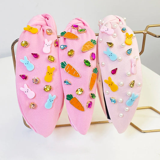 Festival Easter Rabbit Rhinestone Pearl Knot Hairband Headband Adult Hair Accessories Hair Jewley