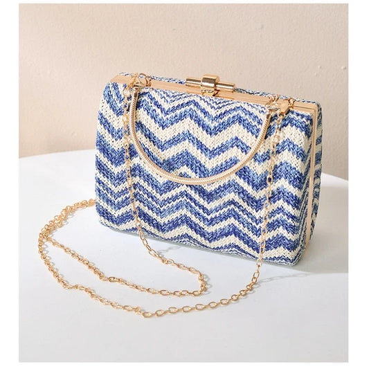 Summer Style Straw Bags for Women 2024 Boho Styke Stripe Clutches Woven Handbag Holiday Outdoor Wedding Purse Small Beach Bags