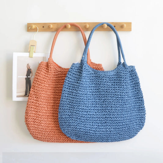 Casual Large Capacity Straw Tote Bag Simple Paper Woven Women Shoulder Bags Handmade Big Summer Beach Handbags Big Shopper Purse