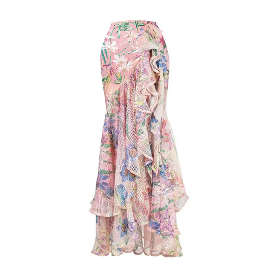 2024 Printed Ring Link Bikini Split Skirt Women High Waist Swimwear Female Padded Bathing Suit Swim Beachwear Cover Up Summer