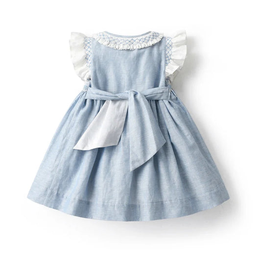 2024 Kids Spanish Dress Girls Hand Made Smocking Blue Dress with Ruffle Collar Sleeeve Baby Smocked Embrodiery Dresses