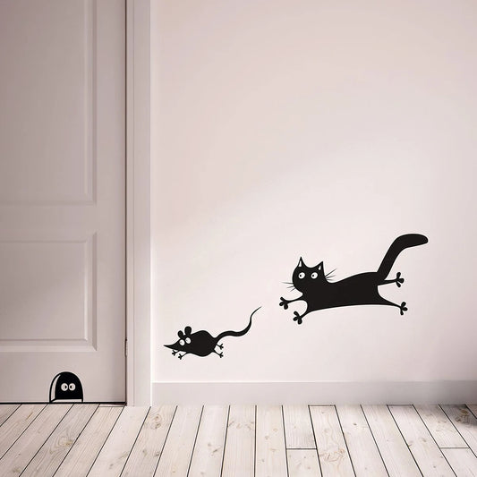 Cartoon Mouse and Cat Door Table Wall Sticker Decal Living Room Playroom Funny Animal Vinyl Kitchen Home Decor