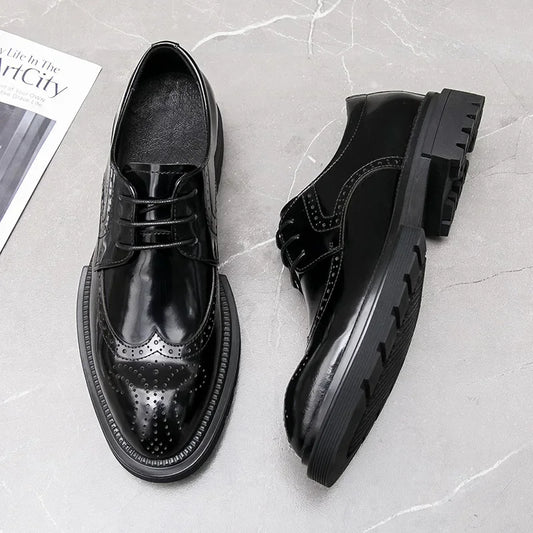 2025 New Fashion Men Business European Patent Leather Create Platform Shoes Atmosphere Men Leather Shoes Gift