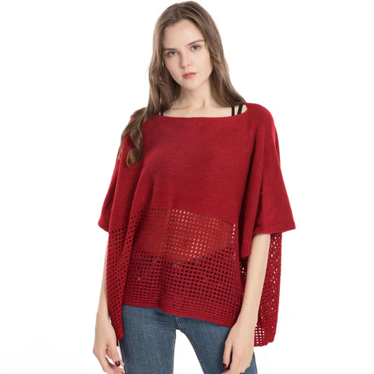 Women Spring Autumn Shawl Lady Knit T-shirt Hollow Out Wrap Solid Color Pullover Loose Sweater Fall Poncho Wholesale Drop Ship