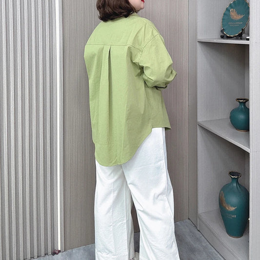 Spring/Autumn New Lapel Long Sleeve Loose Shirt Women Plus Size Casual Style Pocket Shirt-Coat 2314
