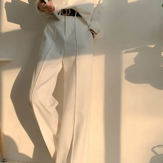 Spring Autumn High Waist Wide Leg Pants For Women Office Wear Elegant Loose Suit Pants High Street Ladies Straight Trousers