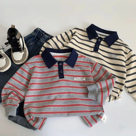 Baby Girls Boys Polo Shirts Kids Long Sleeved Sweatshirt Striped Printed Tops 2025 Spring Autumn Children's Clothing Casual