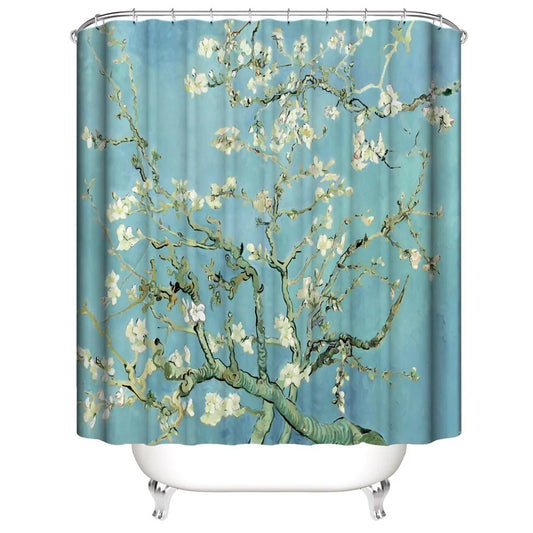 Japanese Cherry Blossom Shower Curtain Set Non-Slip Rug Toilet Lid Cover Bath Mat Spring Sakura Flower Pastoral Bathroom Curtain