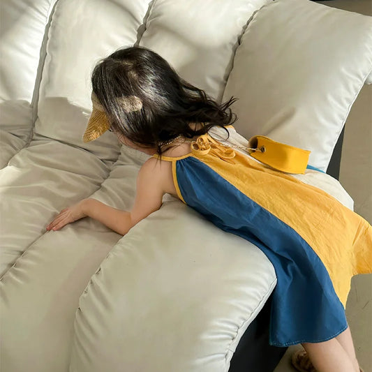 2024 New Summer Girls' Dresses Color Matching Suspender Dress Princess Dress Children's Vacation Beach Dress Baby Kids Clothing