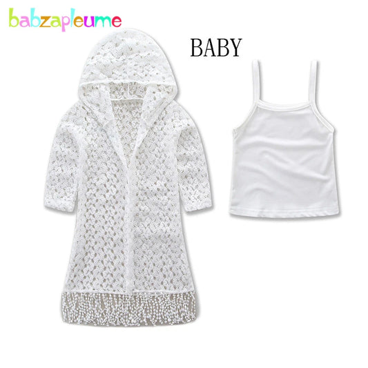 2Piece Spring Summer Family Matching Outfits Mother Daughter Clothes Hooded Girl Coat+White Tops Kids Boutique Clothes BC1040