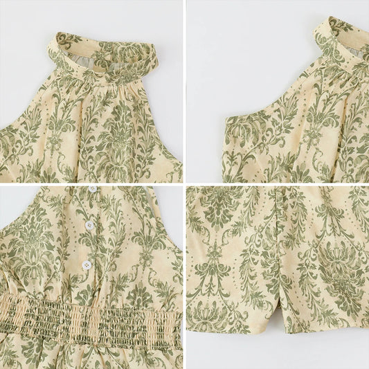 Bear Leader Summer Sleeveless Elastic Waist Girls Jumpsuits Printed Hanging Neck Rompers One Piece Sets Kids Fashion Clothes