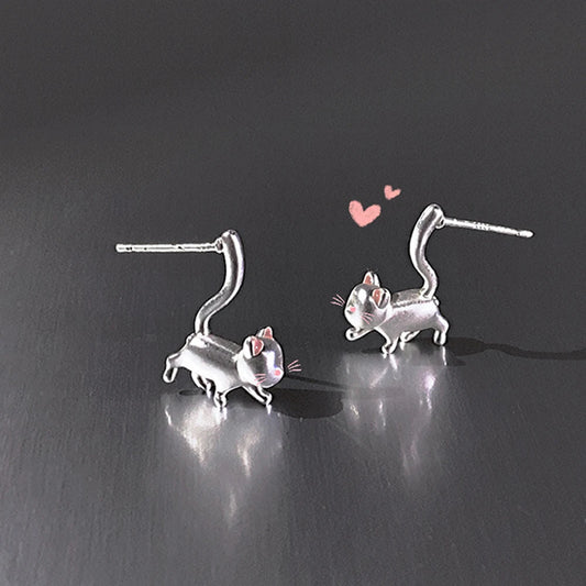 New Romantic Cute Cat For Women Fashionable Design Unique Funny Simple Silver Needle Earrings Jewelry Party Gift