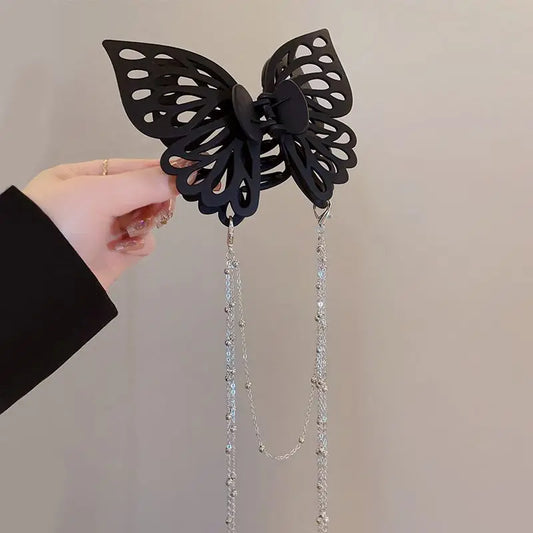 Long Tassel Butterfly Hair Clips for Women Headdress Temperament Elegant Hairpin Black Grab Clip Elegant French Hair Accessories