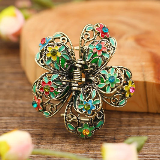 5 Colors Retro Painting Flower Hair Claw Vintage Metal Costume Hair Clips Women Accessories