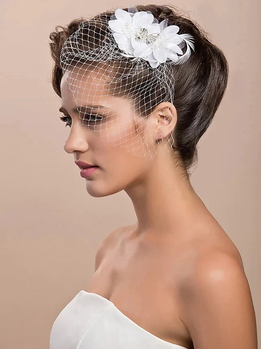 Bridal Net Birdcage Face Veils Wedding Party Feather Vintage Bridal Fascinators Hair Accessories Brides Blusher Vieil Headpiece