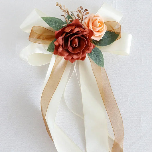 1PC Wedding Car Rearview Mirror Decoration Flower Door Handle Bow Decoration Retro Simulation Flower Wedding Chair Back Flower