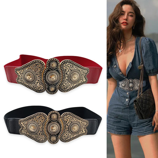 Desinger Belts For Women High Quality Vintage Wide Stretch Cummerbunds Red Black Corset Belt Female Elastic Waistband White