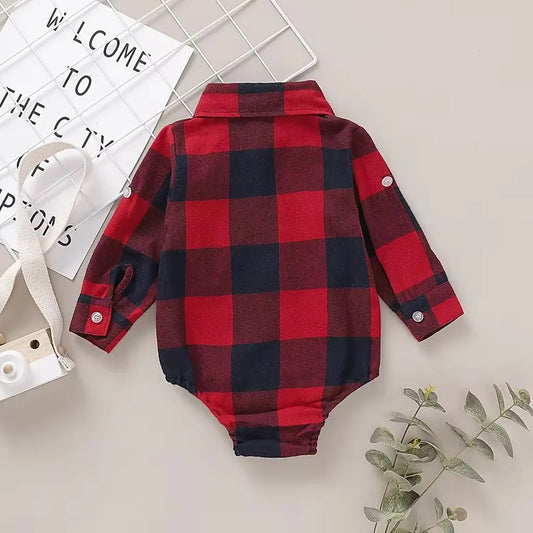 0-18 Monate Neugeborenes Baby-Body mit langen Ärmeln, rot kariert, Frühlings- und Herbstmode, Overall für Säuglings-Baby-Kleidung
