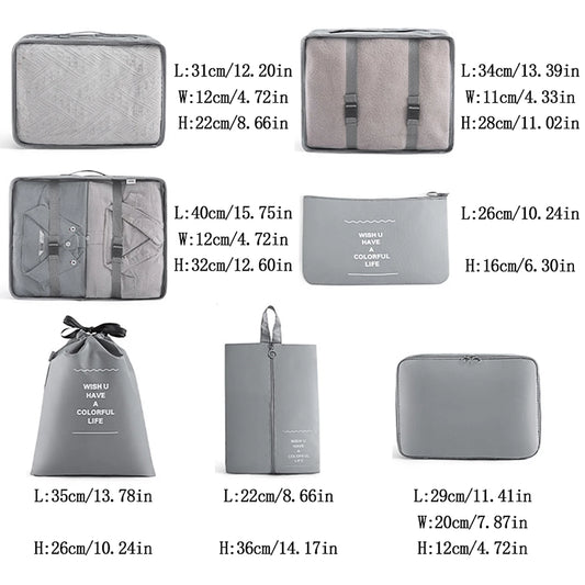 7-teiliges Reise-Organizer-Set, Aufbewahrungstaschen, Koffer, Verpackungswürfel-Set, Koffer, tragbares Gepäck, Kleidung, Schuh-Aufbewahrungstasche, zusammenklappbar.-zmt