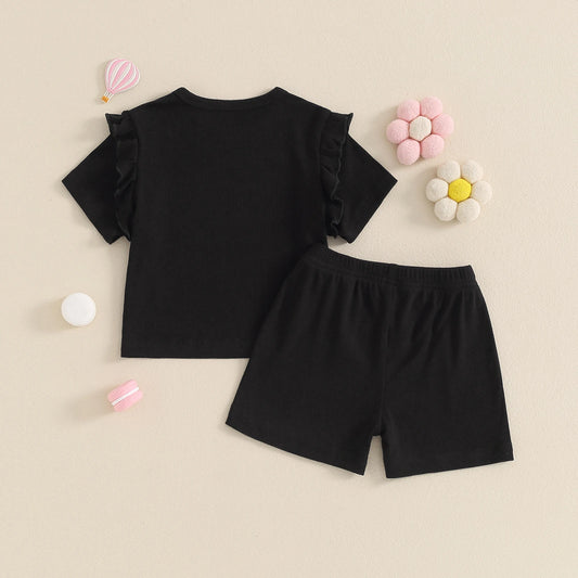 Sommerkleidung für Neugeborene, Kleinkinder, Babys, Mädchen, gestrickt, gerippt, Rüschen, Hemd, Shorts, Sets, lässige Outfits, 0 3 6 9 12 18 Monate 2T