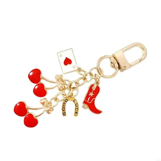 Cute Cherry Pendants Women's Bag Charms Gold Plated Keychains Bag Accessories