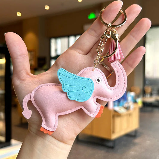 Designer PU Leather Wing Flying Elephant Hanger Car Key chain Pendant Decoration For Ladies Bag Charm Accessorie Ornament Gift