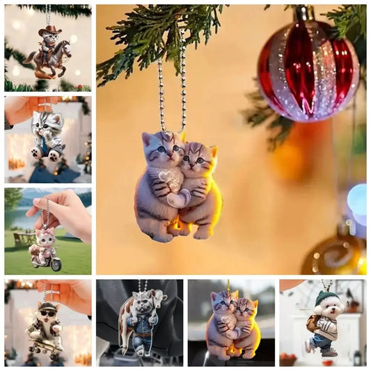 Creative Dog Cat Key Chain Car Key Ring Cartoon Animal Acrylic Pendant Bag Pendant Backpack Accessories Car Decoration Bag Decor