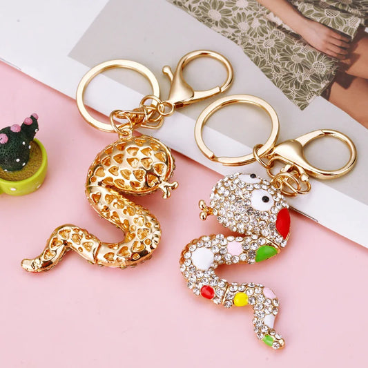 Creative Diamond Chinese Zodiac Little Flower Snake Car Pendant Cartoon Cute Snake Keychain Ring Bag Hanging Decoration Gift