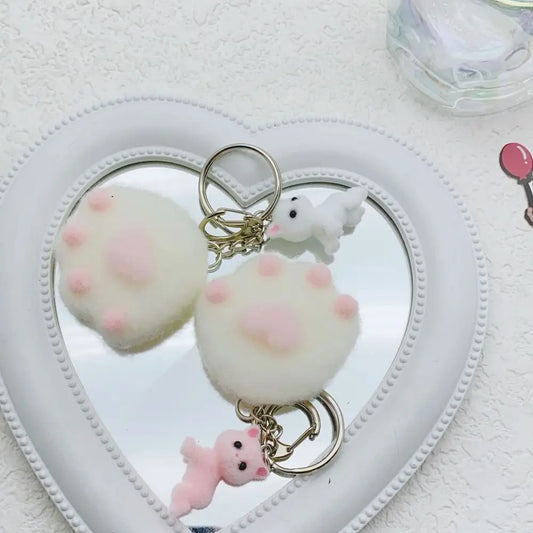 Kawaii Flocking Cat Pendant Phone Lanyard Cute Mobile Phone Charm Backpack Headphone Case Decoration for Girls Jewelry Gifts