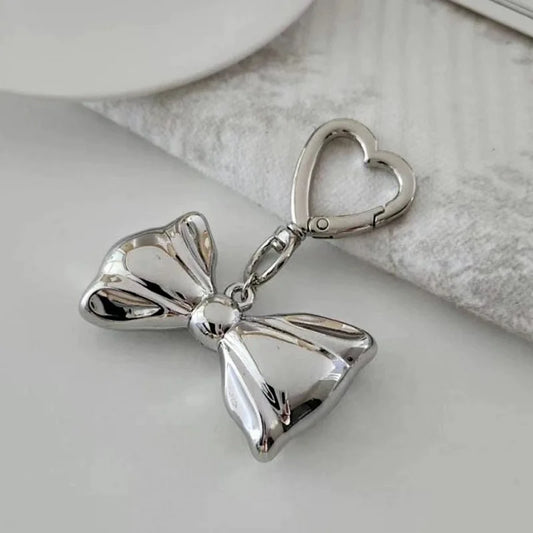 Punk Gold Silver Color Bowknot Keychain for Women Girls Smooth Metal Heart Love Buckle Bow Pendant Bag Decoration Accessories