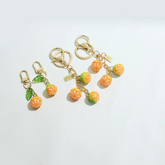 Cute Fruit Keyring Cartoon Simulation Orange Keychain Pendant Bag Earphone Case Phone Pendant Decoration Accessories Gifts