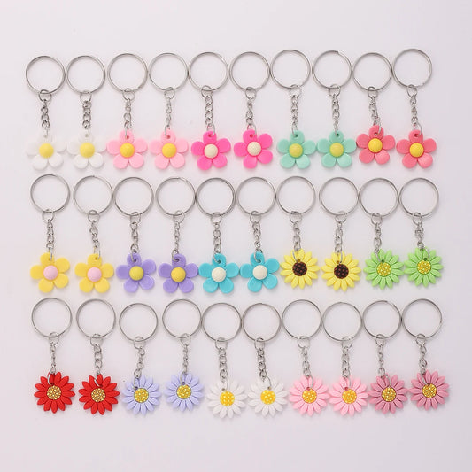 30pcs Flower Charm Keychain PVC Soft Sun Flower Pendant Key Ring Ornaments Wallet Bag Backpack Charm Birthday Party Gift