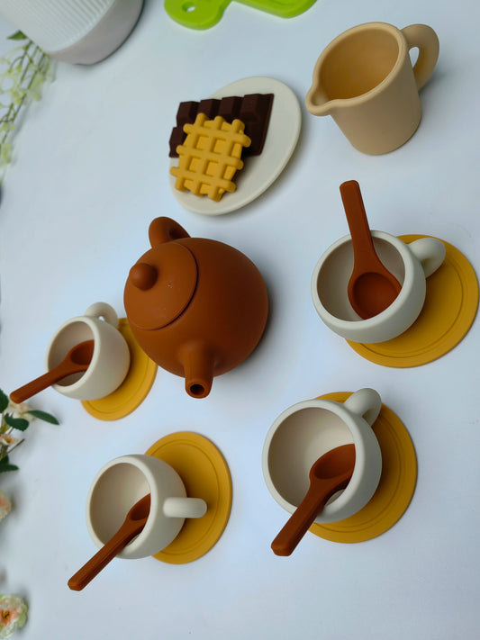 17pcs Silicone Tea Toys Pretend Play Kitchen Accessories Food Playset for Kids Role Play Game for Toddlers Girls Boys Gifts