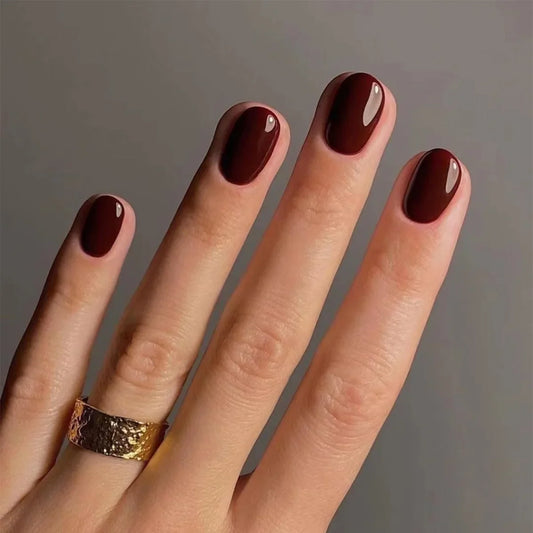 24Pcs Solid Color Press on Nails Short Square Round Fake Nail Glossy Dark Nail Art Wearable Detachable Autumn Winter False Nails
