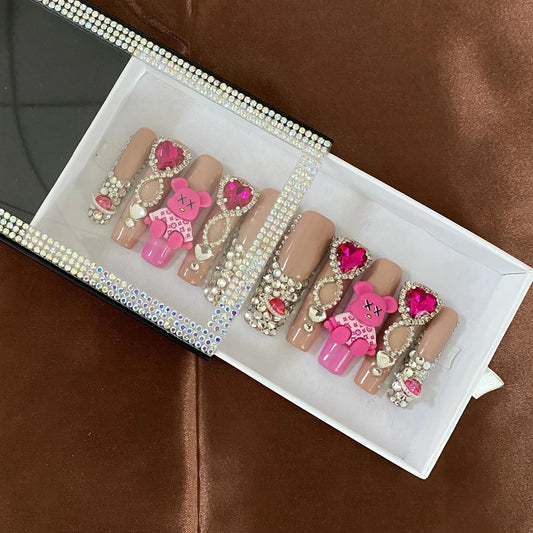 2024 New Design Nail Art Y2K Gel Polish Square Acrylic Luxury Glossy Bling Handmade Press On Nails 10 PCS Fingernails