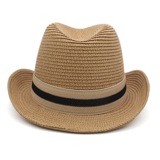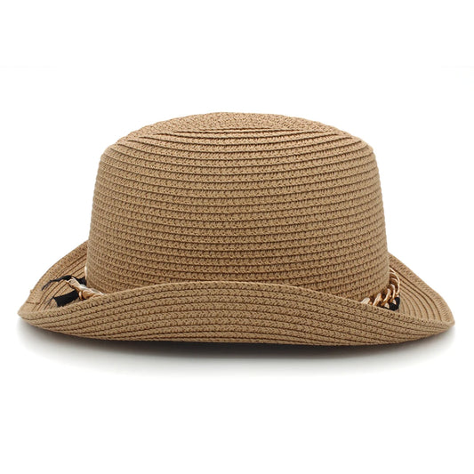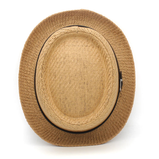 Men Women Summer Solid Straw Homburg Hats Classical Retro Fedora Caps Trilby Sunhat Party Beach Travel Outdoor Adjustable Size