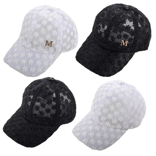 Adjustable Fashion Outdoor Women Girls Hip Hop Visors Cap Flower Baseball Cap Mesh Hat Lace