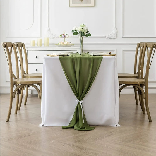 27.5x118 Inch Olive Green Chiffon Gauze Table Runner Wedding Table Running Baby Shower Rustic Sheer Dining Table Decoration