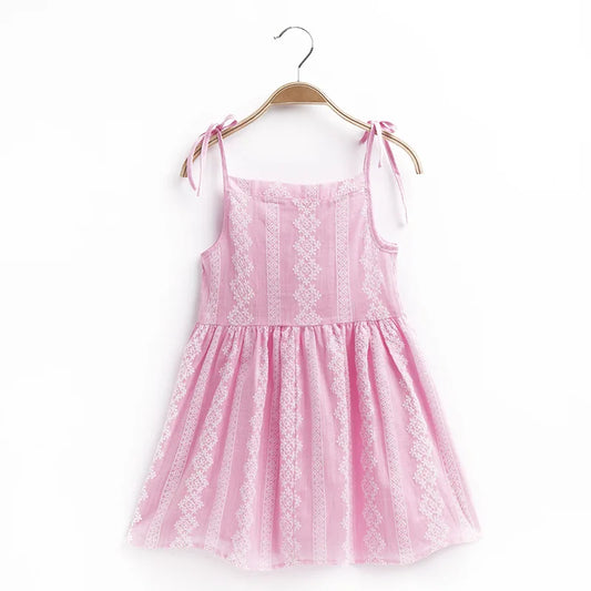 Girls Strappy Pink Sleeveless Printed Dress Cotton And Linen Casual Dress