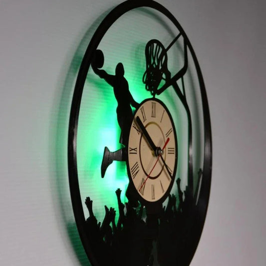 Basketball Wall Clock LED Remote Control Light Basketball Player Vinyl Record Wall Clock Dunk Basketball Home Decoration Gift