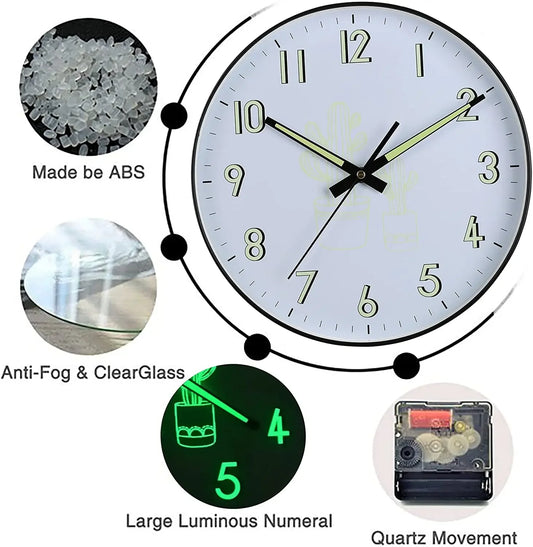 12 Inch Silent Non Ticking Quartz Clocks With Night Light for Bedroom Living Room Kitchen,Large Luminous Home Decoration