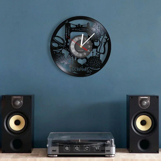Vintage Sewing Artwork Wall Clock Sewing Machine Cross Stitch Vinyl Record Wall Clock Retro Quilting Home Decor Mama's Gift