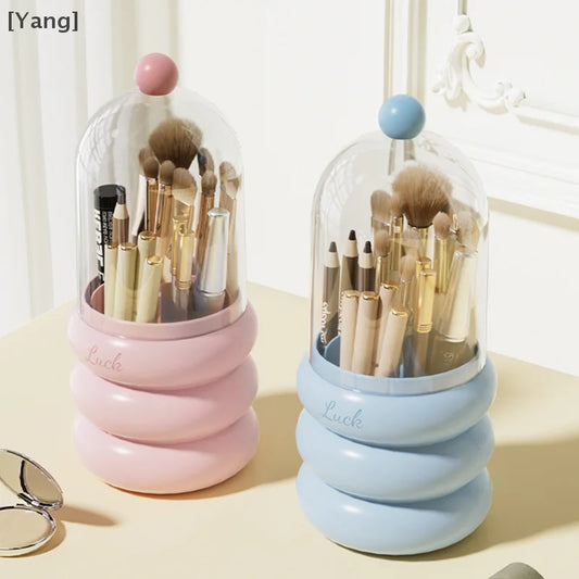 360° Rotating Makeup Brushes Holder With Lid Lipstick Organizer Cosmetic Storage Make Up Tools Box Jewelry Pencil Case Container