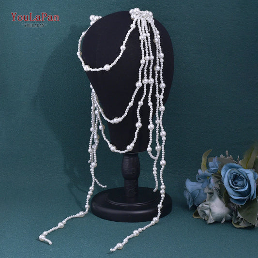 YouLaPan Elegant Fashion Wedding Tiara Long Pearl Tassel Bride Hair Comb Luxury Bridal Headband Women Hair Accessories HP752