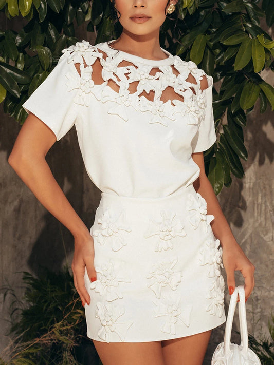 TWOTWINSTYLE Solid Elegant Two Piece Set For Women Round Neck Short Sleeve T Shirt High Waist Mini Skirt Slimming Sets FemaleNormaler Preis Von $50.00 USDNormaler PreisGrundpreis / pro-