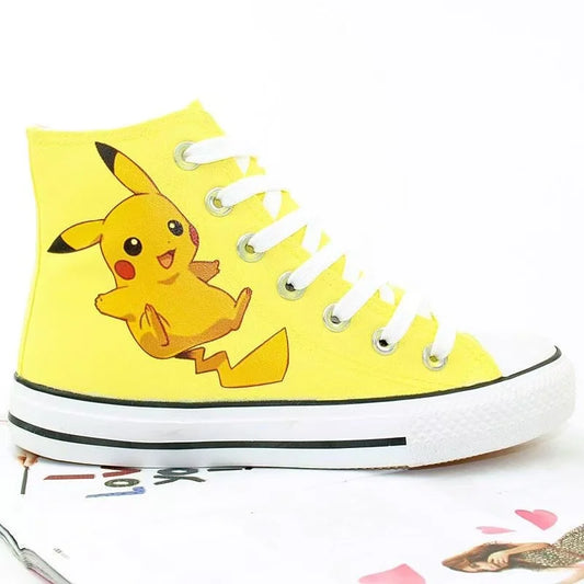 Pikachu Hot selling high top canvas shoes for women men's plus size cute student white sports shoes couple black casual shoes