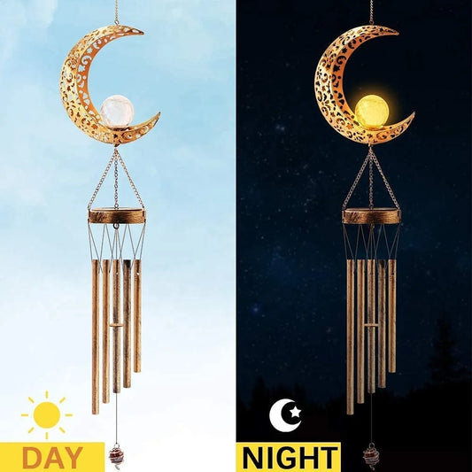Moon Solar Wind Chimes for Outside, Ramadan Decoration Mobile LED lantern light for Muslim islamic art